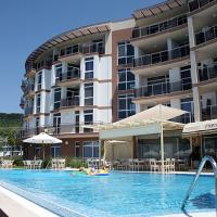 The luxurious complex ensures 3 elevators, fitness, restaurant with summer terrace, bar, parking area, internet access, security system, beach bar and private beach area, swimming pool with children section, children playground and laundry.