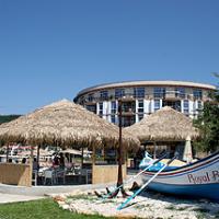 The complex is situated on the first line of the sea, on a spacious and sandy beach. The building is composed by 6 floors, separated into 26 studios and 55 apartments. All of them are completed on turn key level and fully furnished. There is air conditioner in each one room.