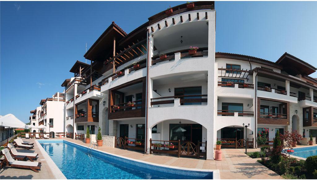 The total built up area of the complex is 10 000 square meters, it is composed by two housings, which are separated into apartments of 60 square meters, up to 160 square meters. About half of the apartments are situated on two levels, in accordance to the architecture of the complex, the relief of the unique place and the opportunity to ensure sea panorama.