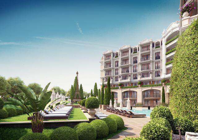 The new complexis builtin a cozy littleresort townSt. Vlas.The architecture is a free improvisation ofthe Renaissance, a littleofthe spirit ofthe Baroque andNeoclassicismwhich was subsequentlyjoinedinone completesongshowallgrace of thecomplex and embodiesthe romance of Paris.
